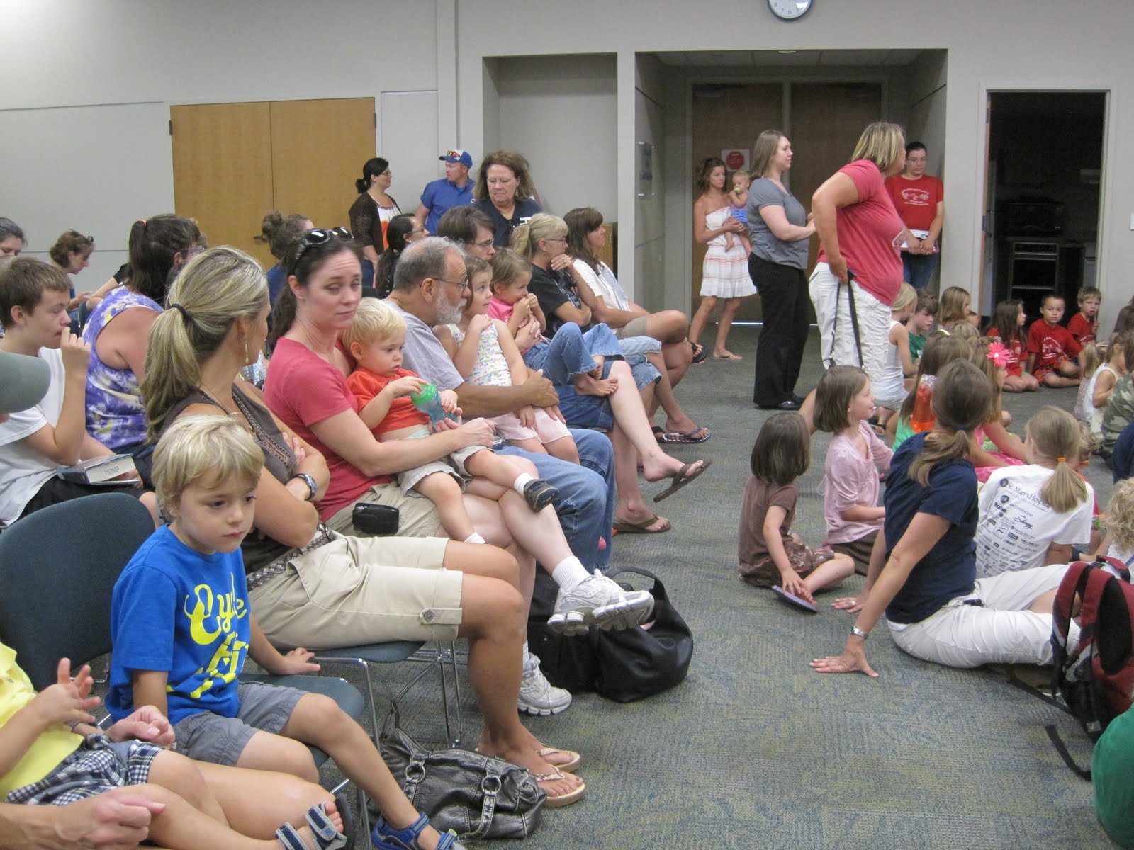 We decided one morning to visit the library to see the Mad Scientists Show. Haley didn't care for the show though so we were out of there within ten minutes. After leaving the show, Haley had Grampy read her some books, help her construct buildings out of blocks, and perform a puppet show. It turned out to be a great morning at the library despite not being able to see the Mad Scientists.
