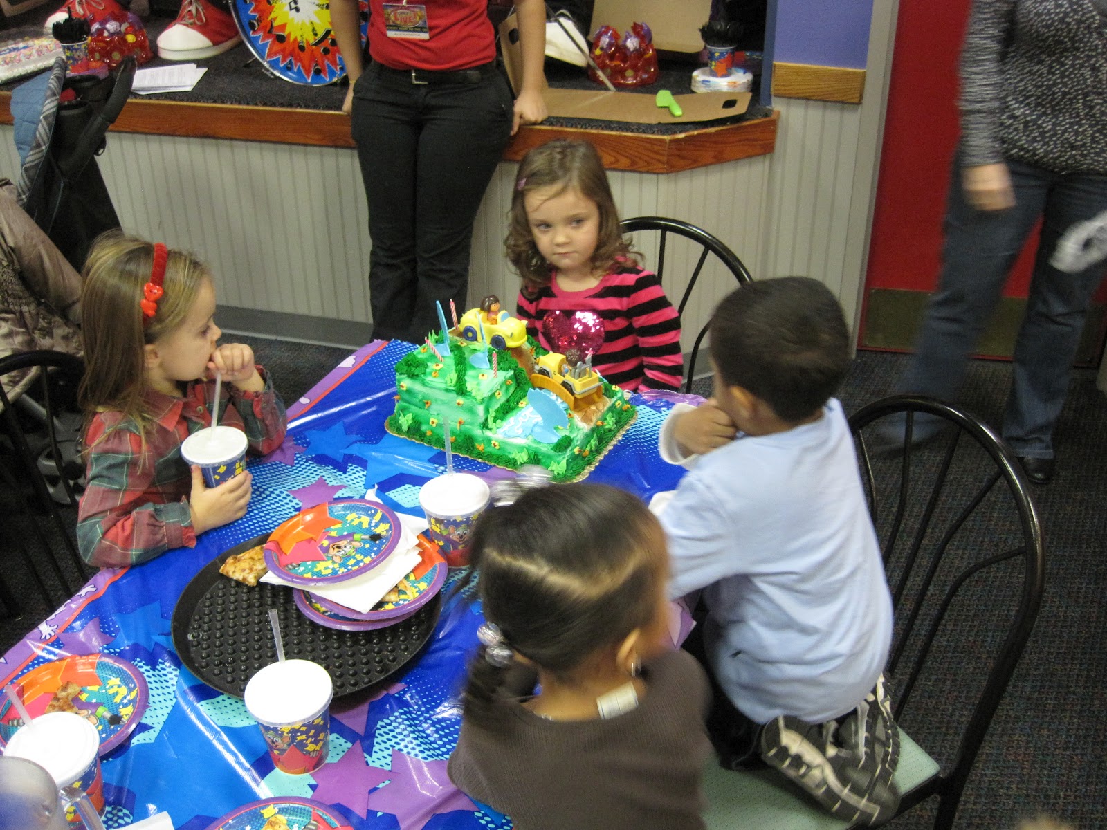 Well, it's finally time for the big birthday. Haley was very excited to turn four and even more excited to have her birthday at Chuck E Cheeses. If you all knew just how often she goes there, you would think she lives there. I tried to get all the kids and parents in the pictures. If I left you out it's only because I didn't have a picture of you. Sorry.